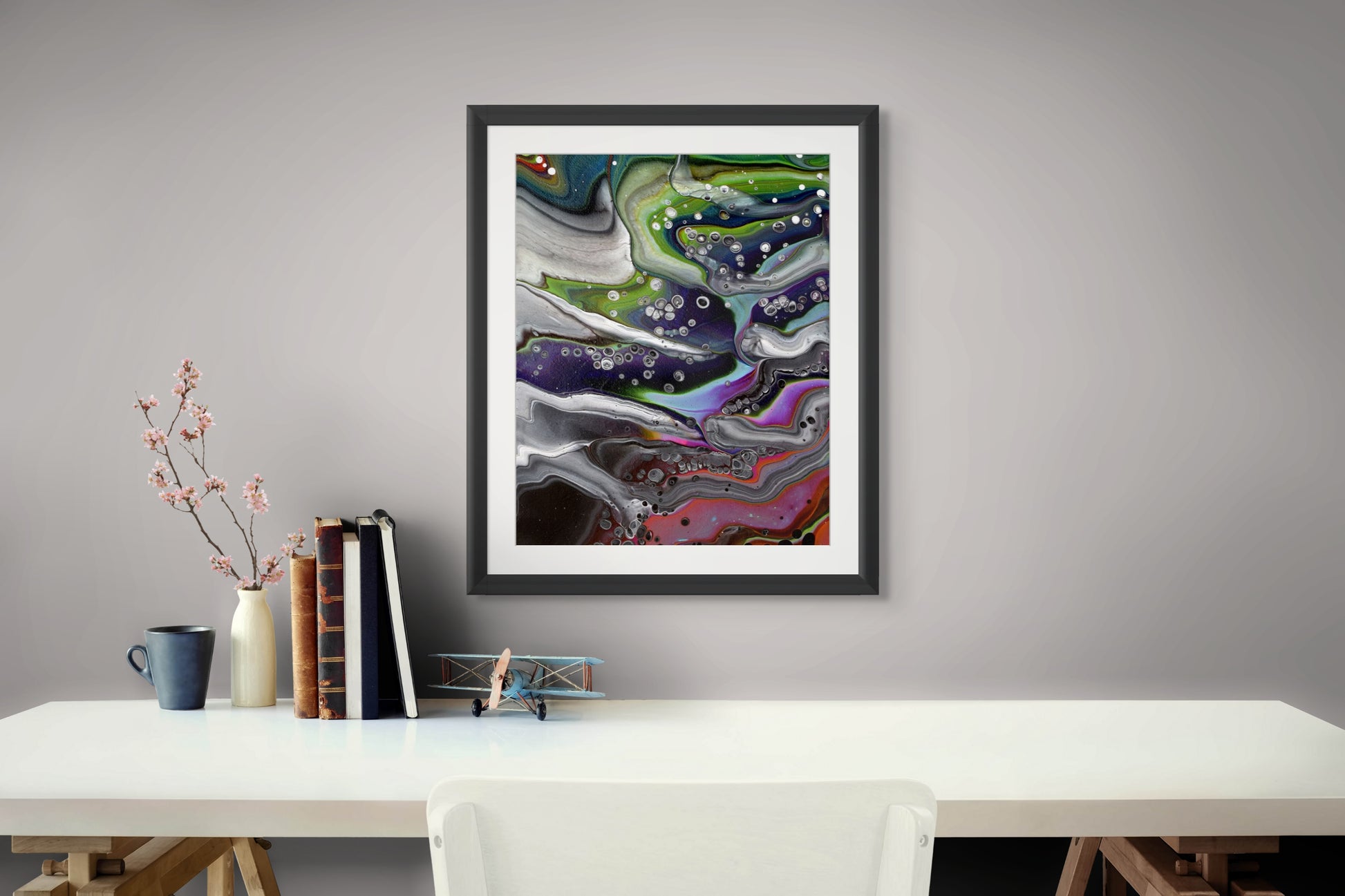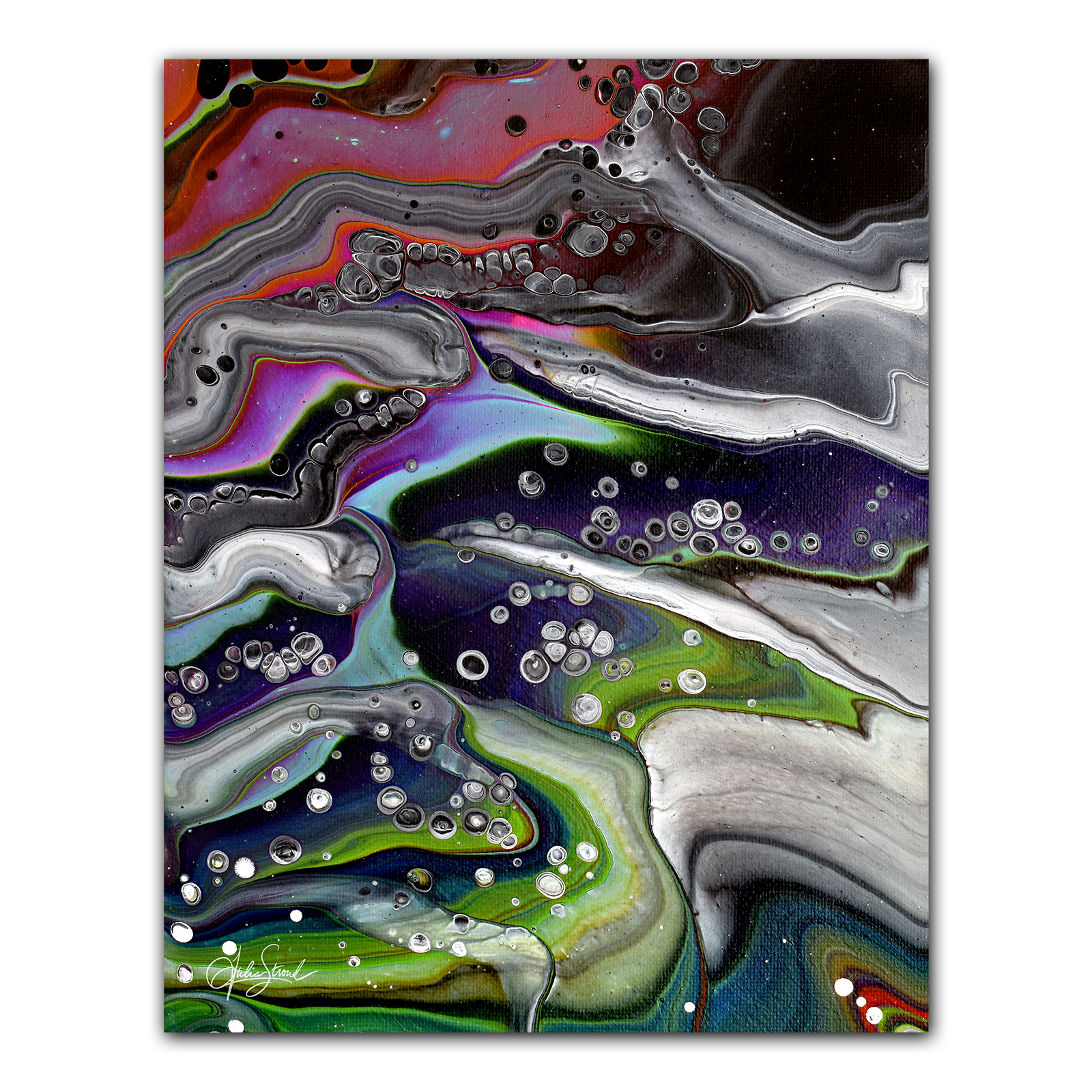 The inevitable currents of change sweep through our lives, shaping us in ways we might not expect. Bursts of color surge through a black and white sea, creating a rhythm that speaks to both turbulence and calm. Face change with courage, whether it pulls you back or pushes you forward.